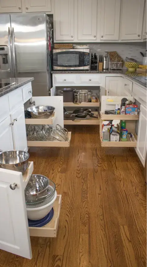 We increase access, organization, and space through unique customized drawer, shelf, cabinet,